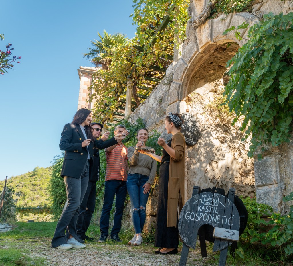 U kratkoj šetnji po našoj kući, dvorcu starom 400 godina, pričat ćemo o našoj povijesti i kušati vino i sve što je s njim povezano – rakiju, kvasinu i varenik te imati malu radionicu u kojoj ćemo naučiti kako pripremiti jedno posve jedinstveno piće – smuticu.