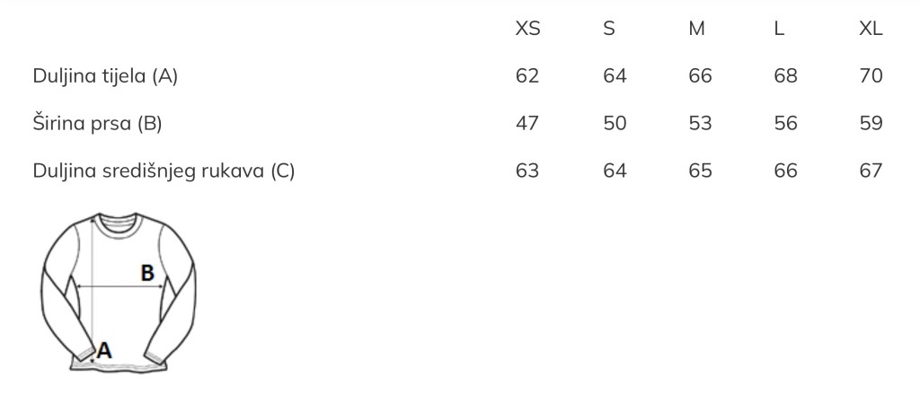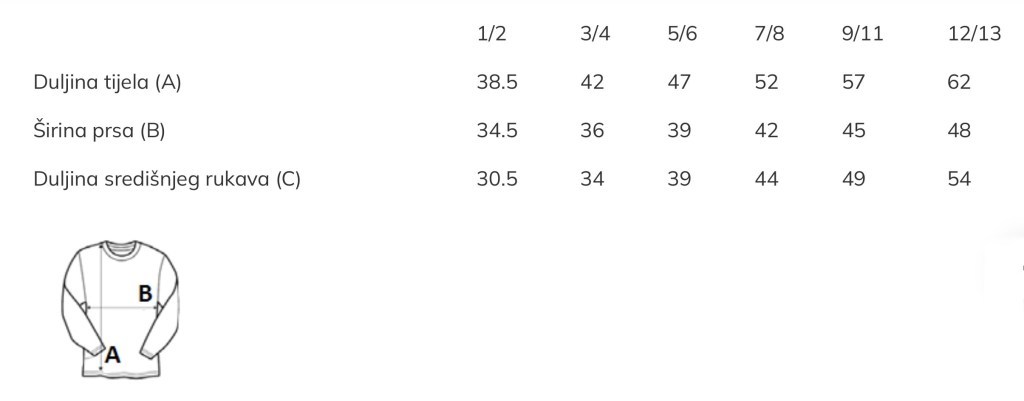 Preporuka je da uzmete majicu sličnog tipa koju već posjedujete, izmjerite širinu i dužinu kao što je prikazano u Vodiču za veličinu i na osnovu toga iz tablice odaberete odgovarajući broj.