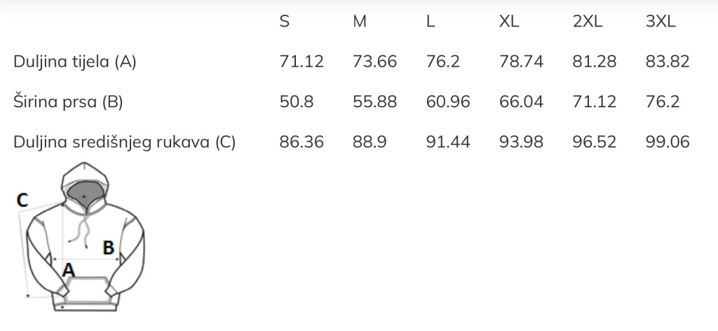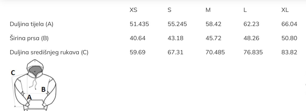 Preporuka je da uzmete majicu sličnog tipa koju već posjedujete, izmjerite širinu i dužinu kao što je prikazano u Vodiču za veličinu i na osnovu toga iz tablice odaberete odgovarajući broj.