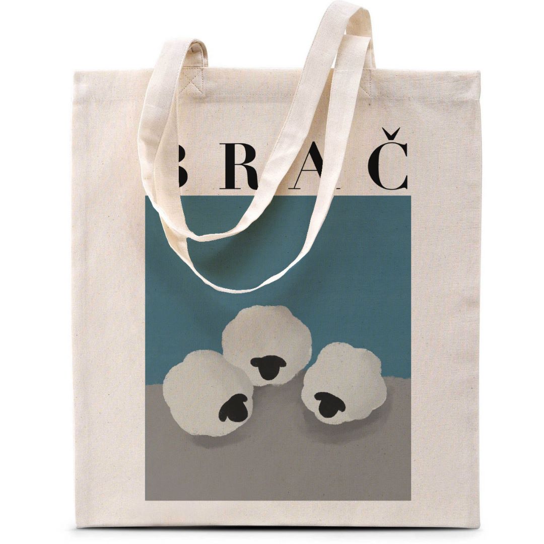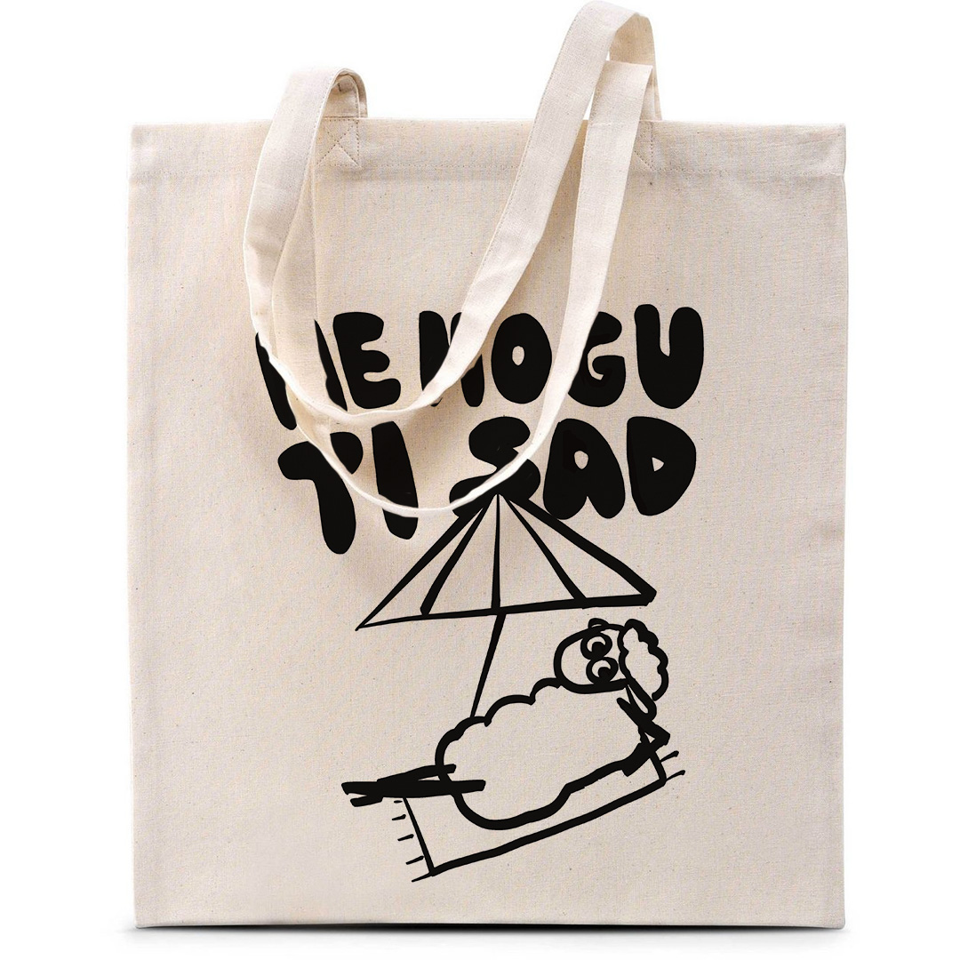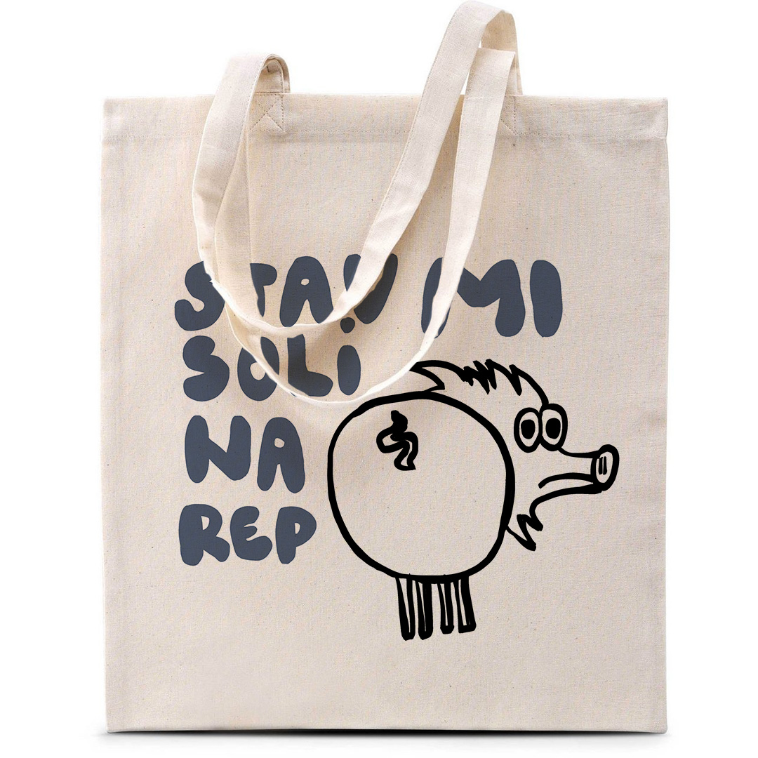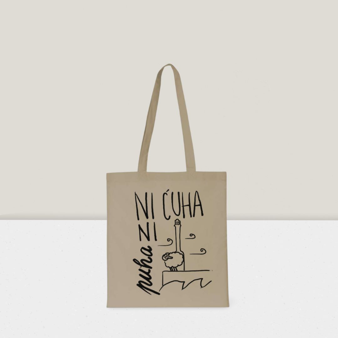 Model nosi torbu boje pijeska, motiv Ovca Izist i leć (130g), univerzalna veličina