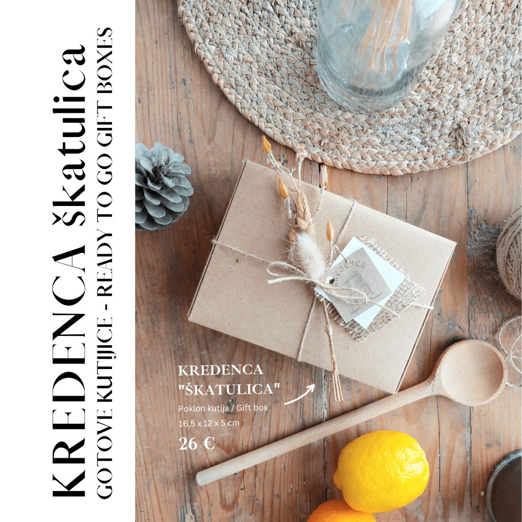 Bring a taste of Brač home with you – with an original souvenir gift box from Kredenca. Kredenca is inspired by an antique kitchen cupboard in which our nonnas (grandmothers) kept their little kitchen secrets – special spices that would give each dish that special home feeling. Take some of these secrets of Brač with you, in the scents of spices, olive oil and tea harvested in the island’s gardens and olive groves & evoke beautiful memories.